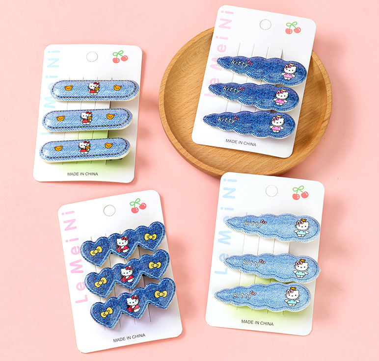 Boxed cartoon Denim printing accessories duck clip (3 pieces)
