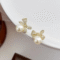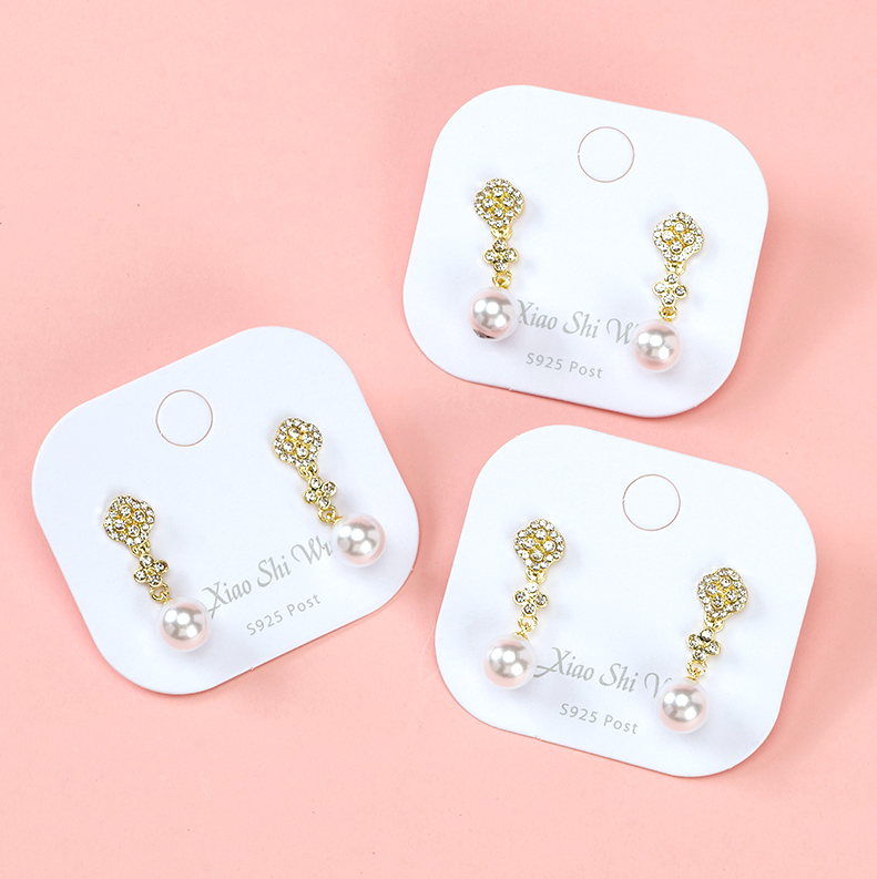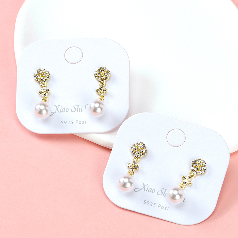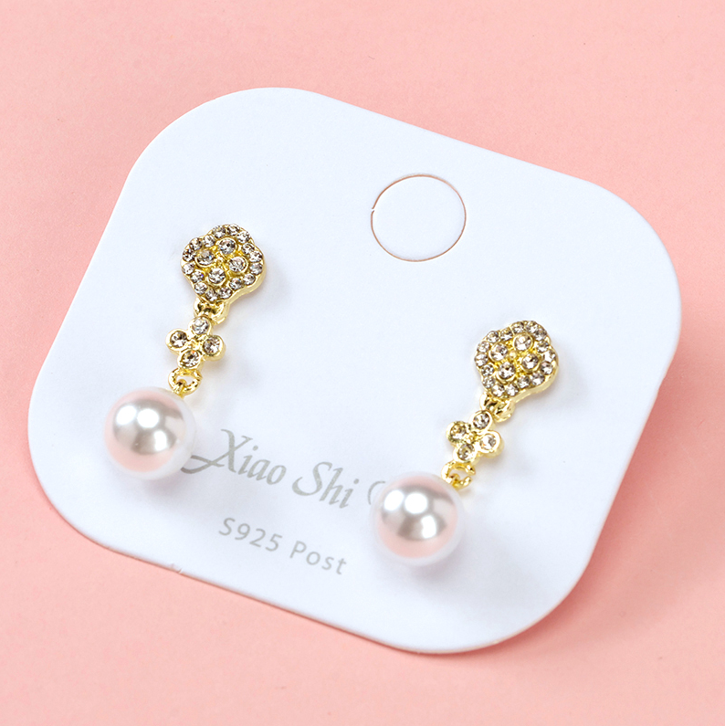 Long Diamond Lucky Grass Pearl Stud Earrings