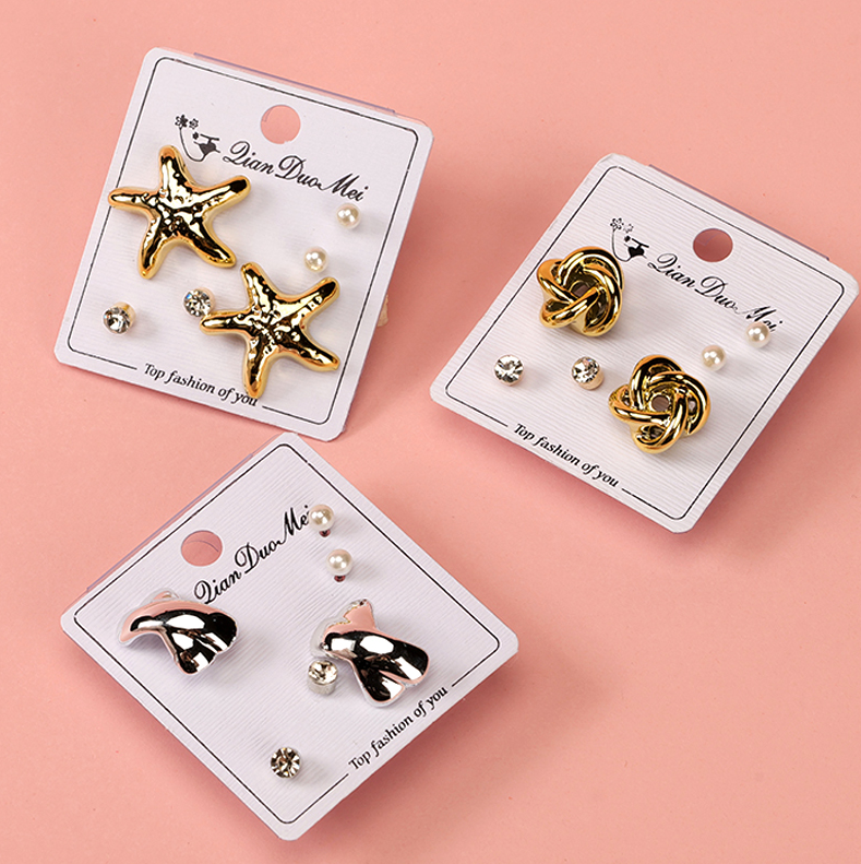 Long gold and silver shape three pairs of stud earrings