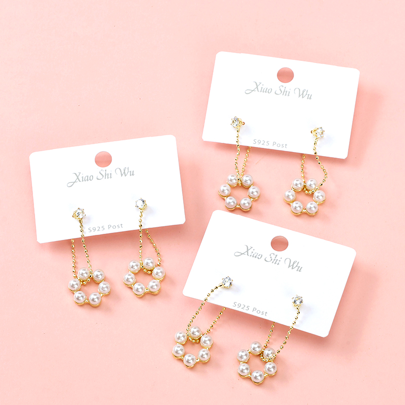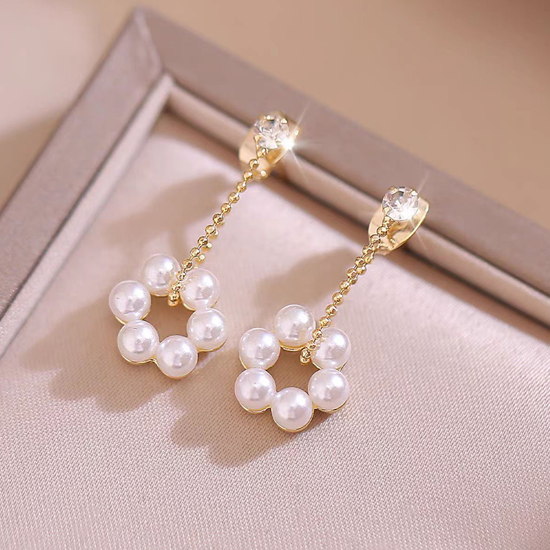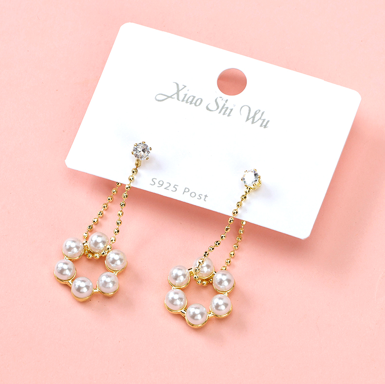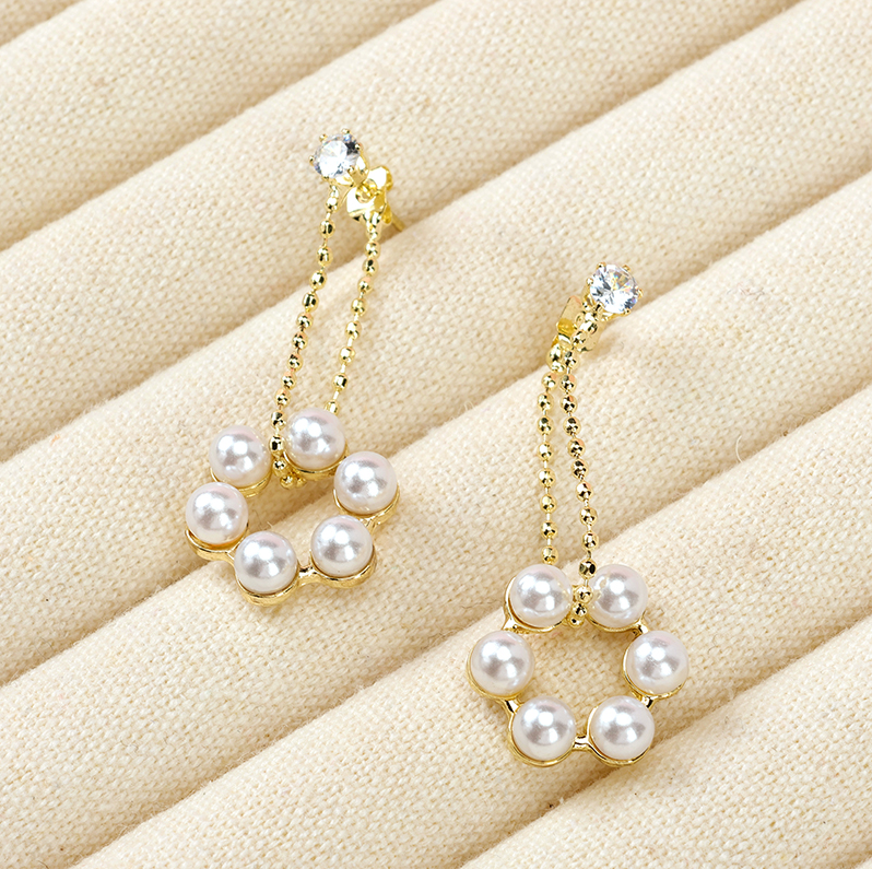 Long net red zircon pearl stud earrings