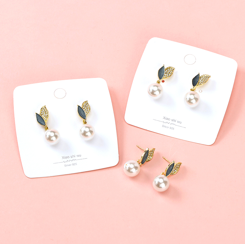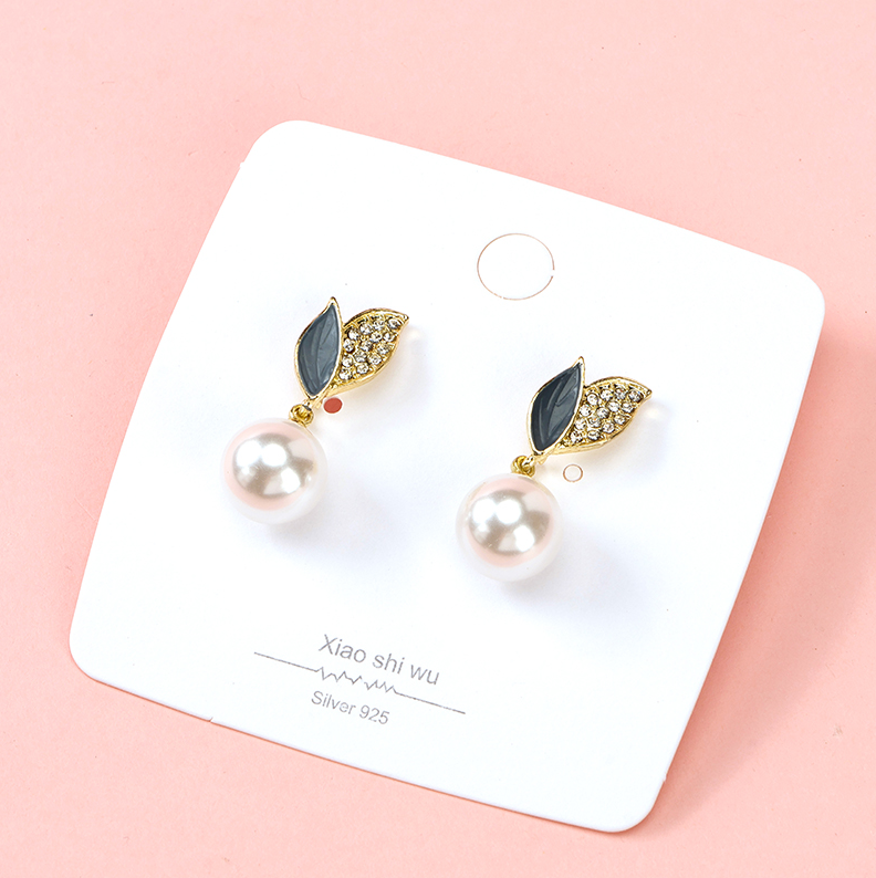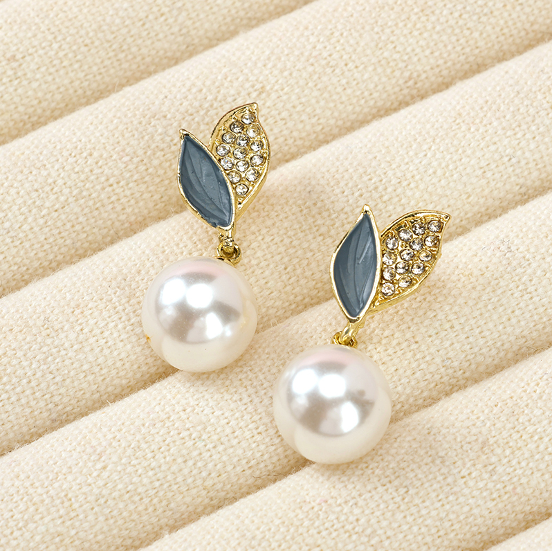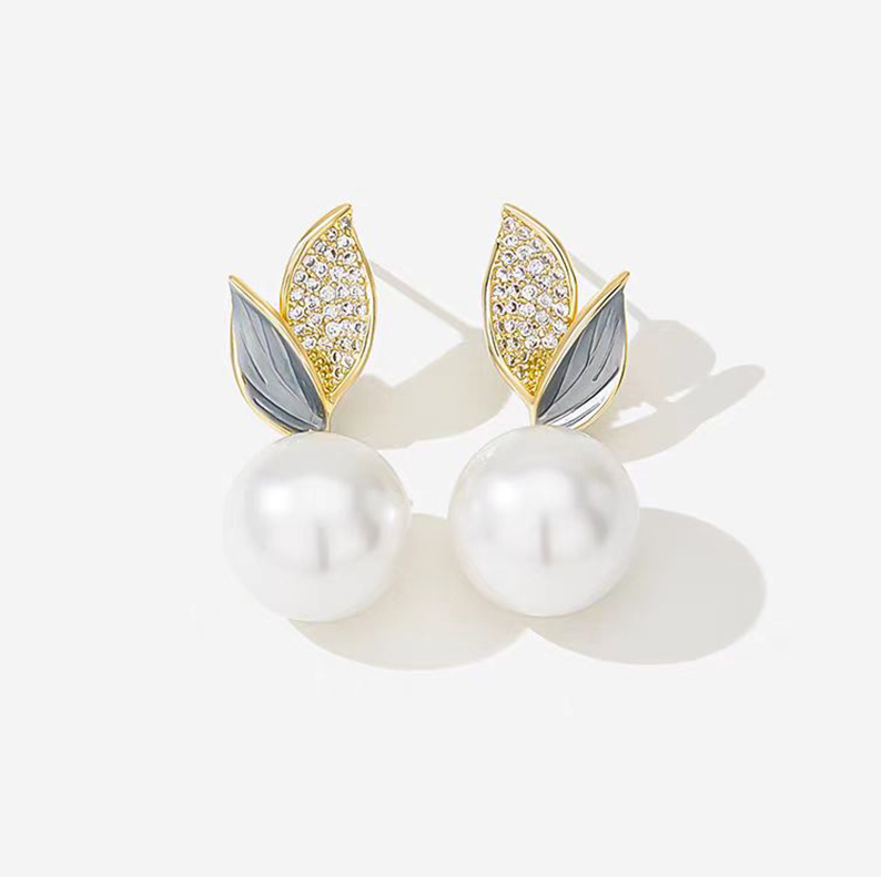 Net red leaf pearl earrings